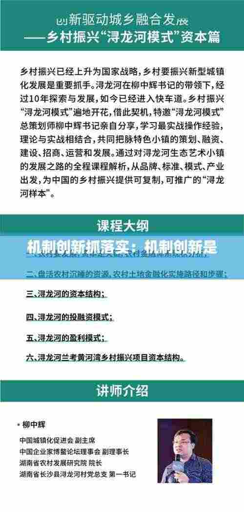 机制创新抓落实:机制创新是